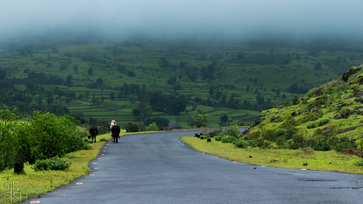 This is truly beautiful place and worth visiting for raptors (except monsoon season, I guess). Sadly no raptor sightings for us. It was pitch dark while returning to the parking lot. Everyone was tired by the long journey, and few sight-seeings. On top of that continuous rain was not willing to spare us for a little dry feeling. There was canteen situated at the base of this trek. The importance of it can only be understood on backward journey, when we retuned tired. So everyone munched on गरमागरम पकोडा, वडापाव and चाय. Infact we hardly noticed this canteen when we started our trek but came in very handy on returning back.सज्जनगडावरून दृश्य